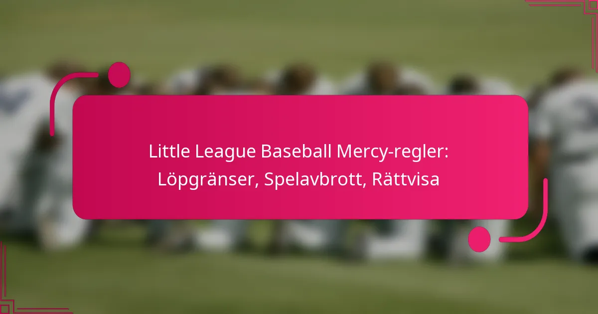 Reglerna för medlidande i Little League Baseball är utformade för att främja rättvisa och sportslighet genom att fastställa löpningsgränser och möjliggöra tidig avslutning av matcher när ett lag har en betydande ledning. Dessa regler syftar till att förhindra alltför ensidiga matcher, vilket säkerställer en positiv upplevelse för alla deltagare och fokuserar på färdighetsutveckling och nöje snarare än bara tävling.